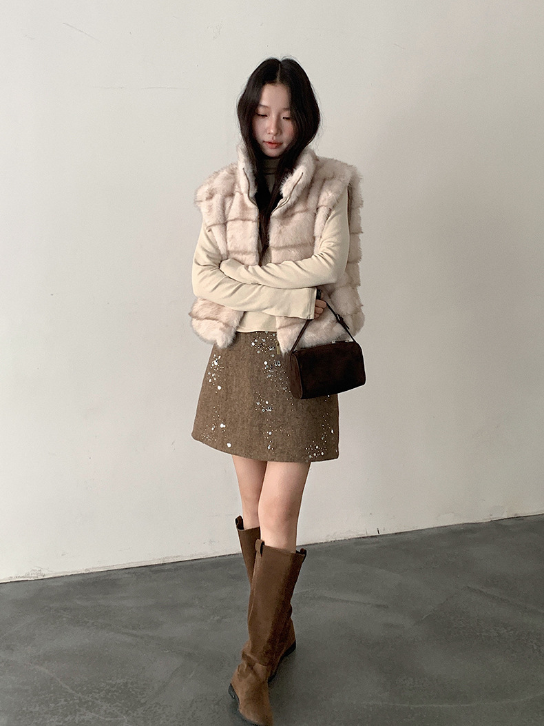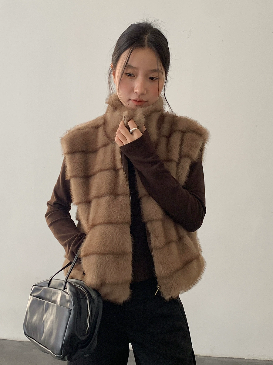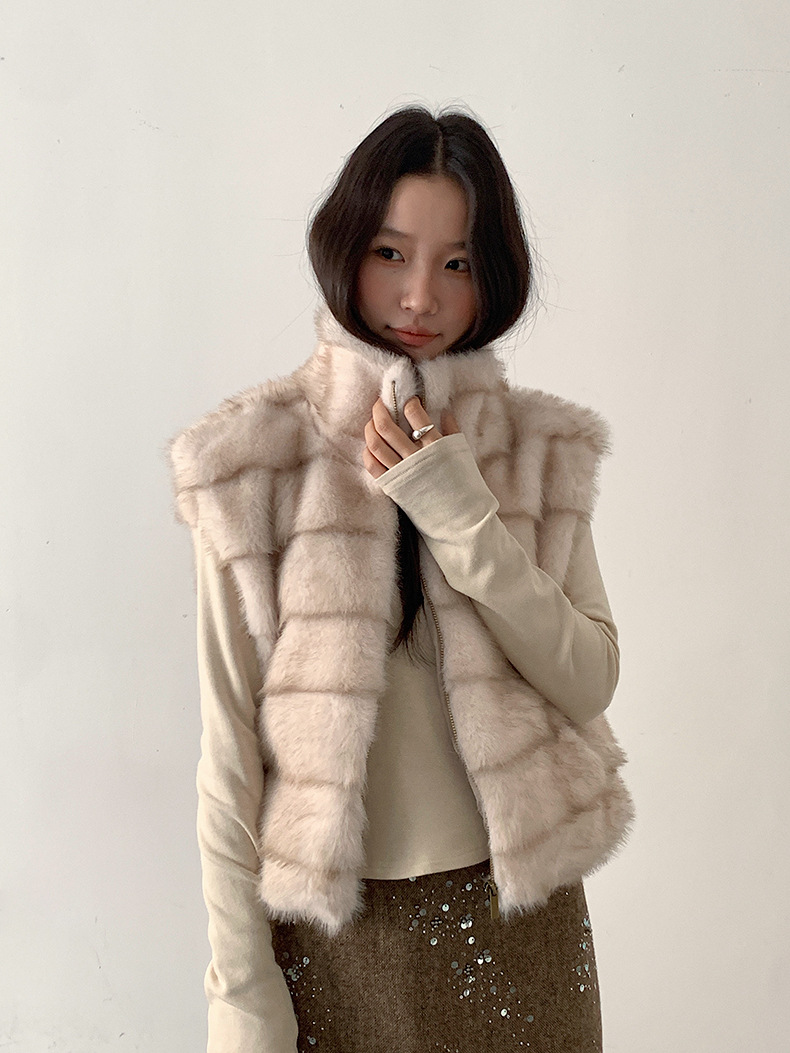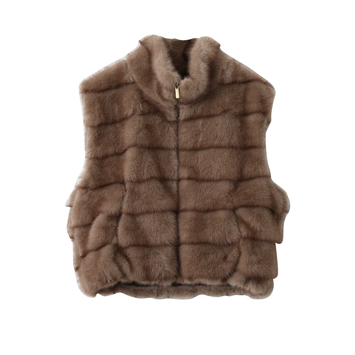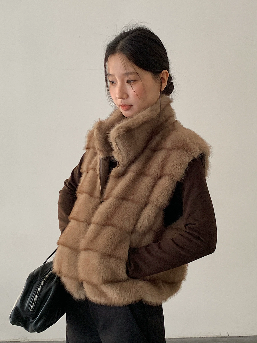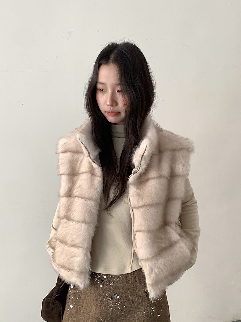 ファーベスト ムートン風 立ち襟 ジップアップベスト レディースベスト 重ね着対応 ノースリーブ アウター